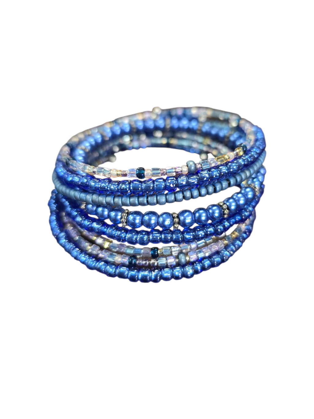 Discover a stunning combination of artistry and elegance with our blue beaded stacking bracelet. Each is an individual bracelet which can be worn together or as a set. . This eye-catching multistrand bracelet, meticulously crafted with various shades of blue to create a mesmerizing effect. T