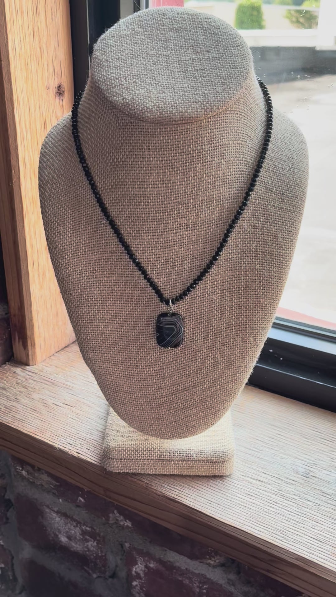 Black Sardonyx Stone Pendant Necklace - Elegant & Grounding Jewelry