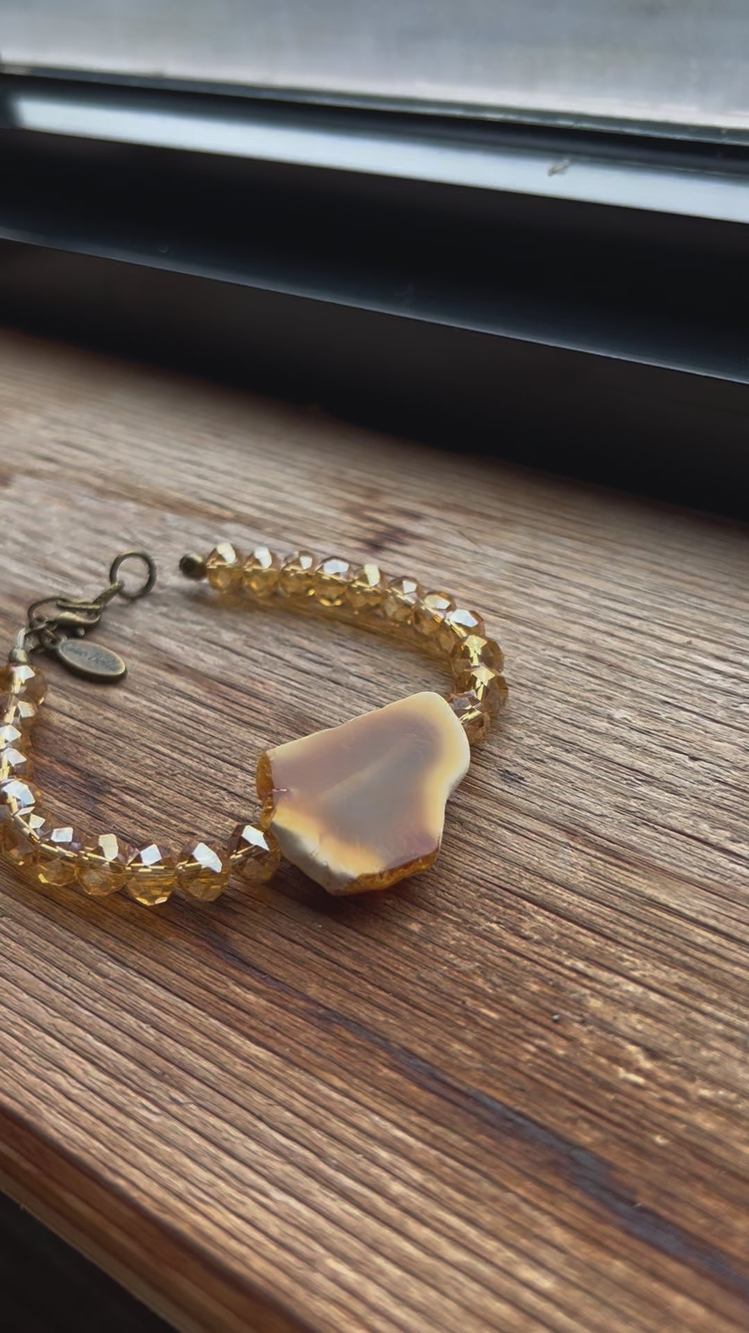 Champagne Crystal Stretch Bracelet with Ivory Centerpiece | Elegant and Timeless