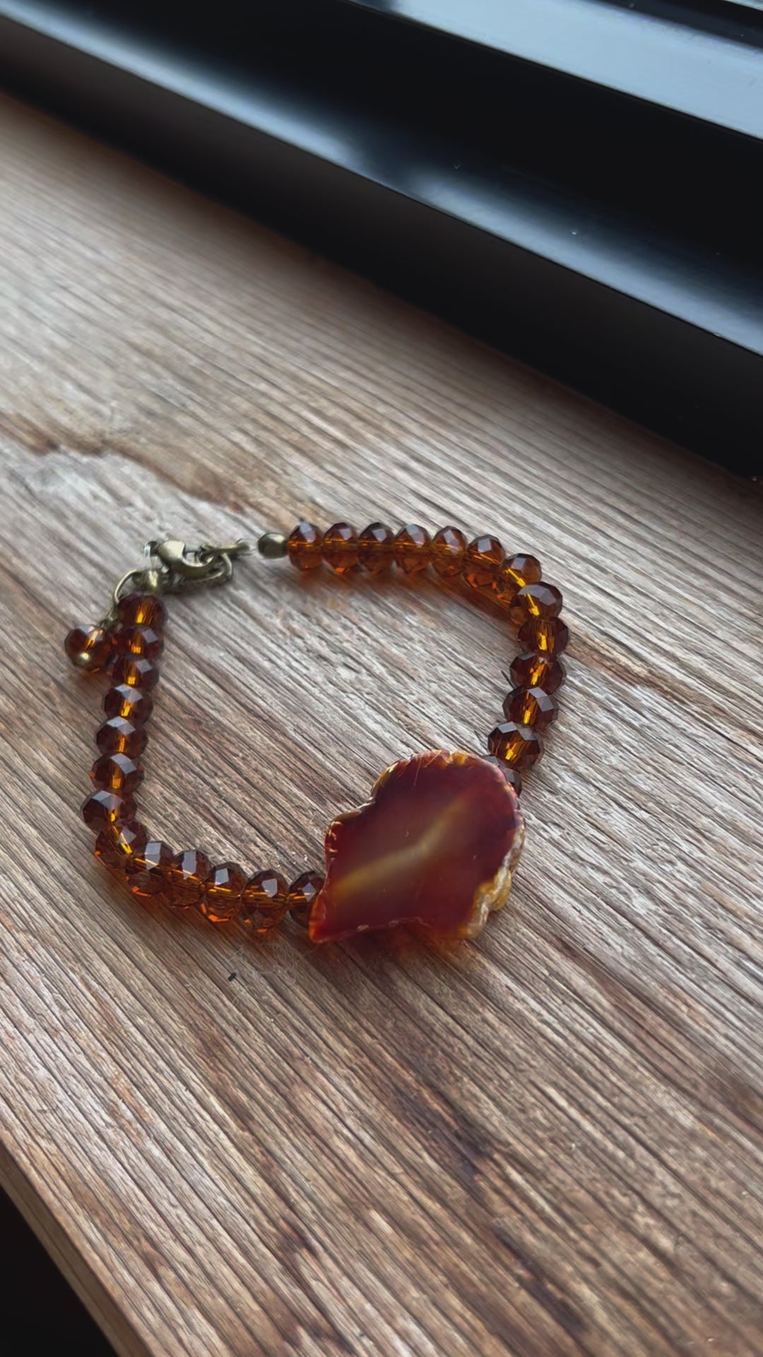 Elevate your style with this elegant stretch bracelet. The centerpiece, a captivating brown agate stone, is surrounded by shimmering topaz crystals, creating a truly eye-catching piece. The stretchy design ensures a comfortable fit for any wrist size, while the antique gold extender allows for customization. Perfect for everyday wear or special occasions, this bracelet adds a touch of sophistication to any outfit.
