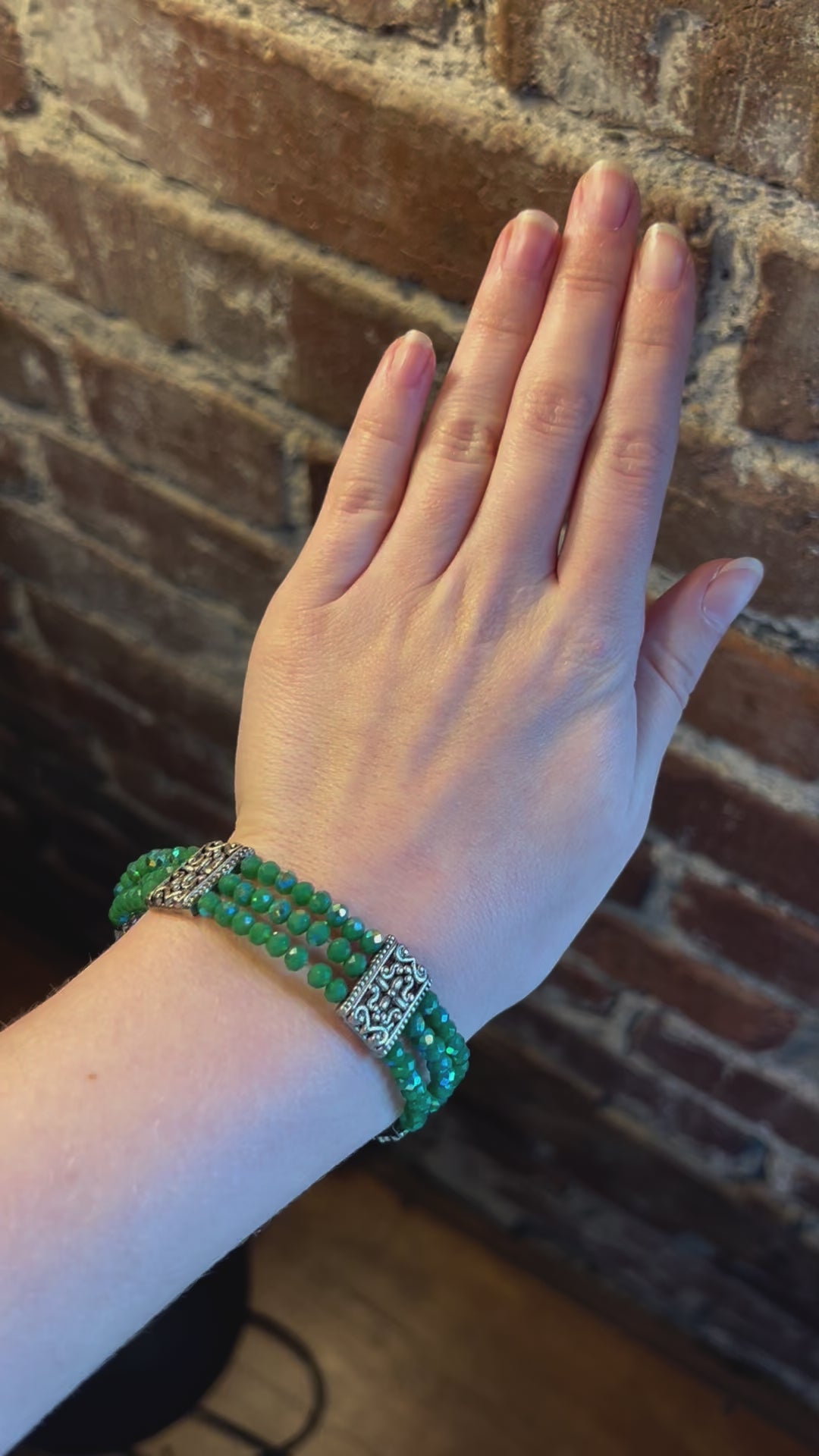 Elegant Green Crystal Triple Strand Bracelet | A Timeless Accessory