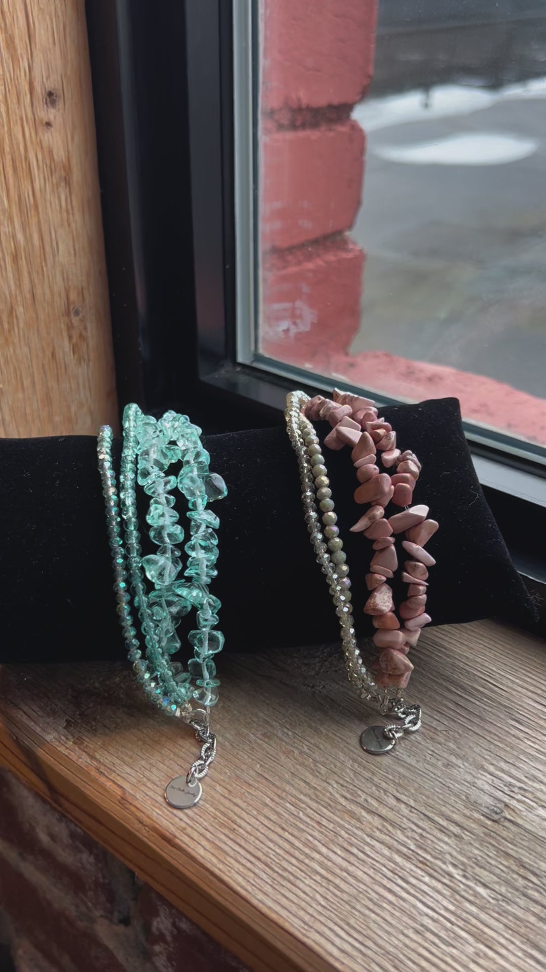 Embrace the healing power of gemstones with this exquisite multi-strand bracelet. Featuring a captivating choice of aquamarine, rhodonite, or yellow quartz, these bracelet are not only beautiful but also beneficial for your well-being. The delicate beads are carefully strung together to create a stunning and comfortable accessory.