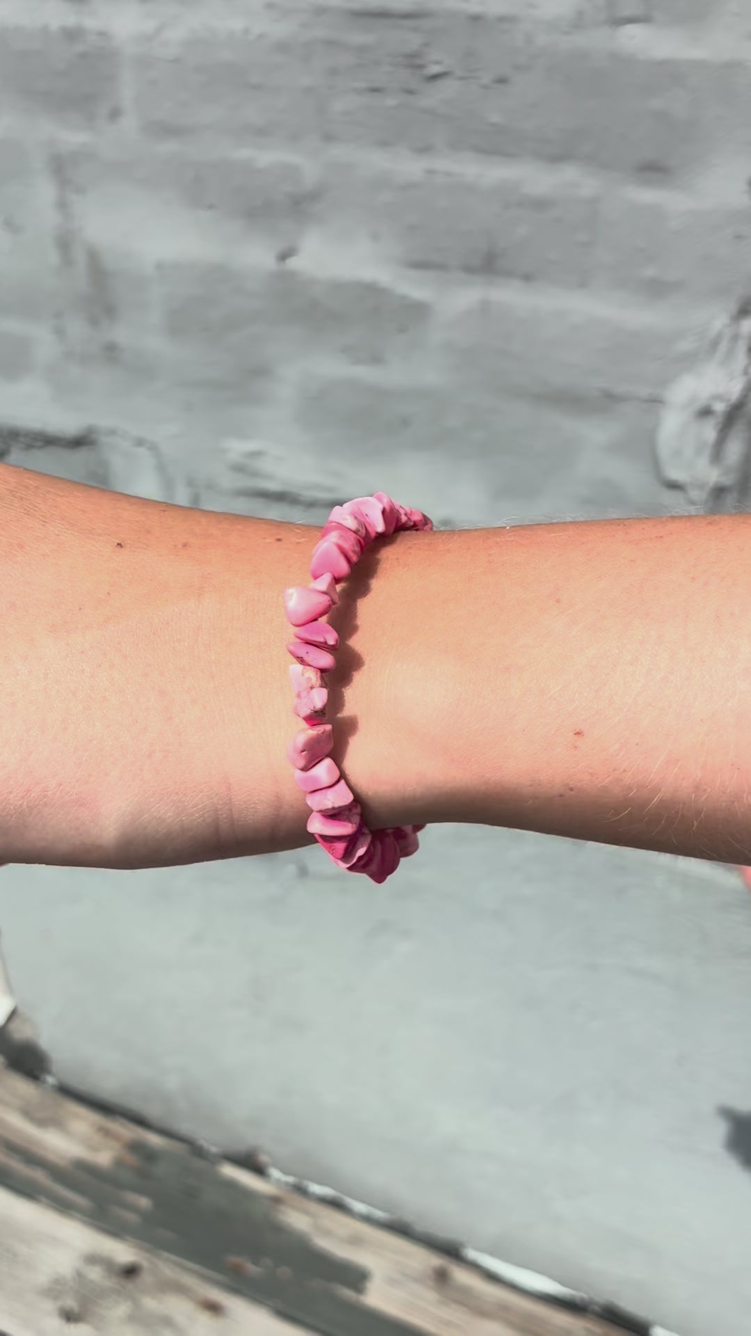 Pink Stone Jewelry Set, Wrap Bracelet & Hoop Earrings