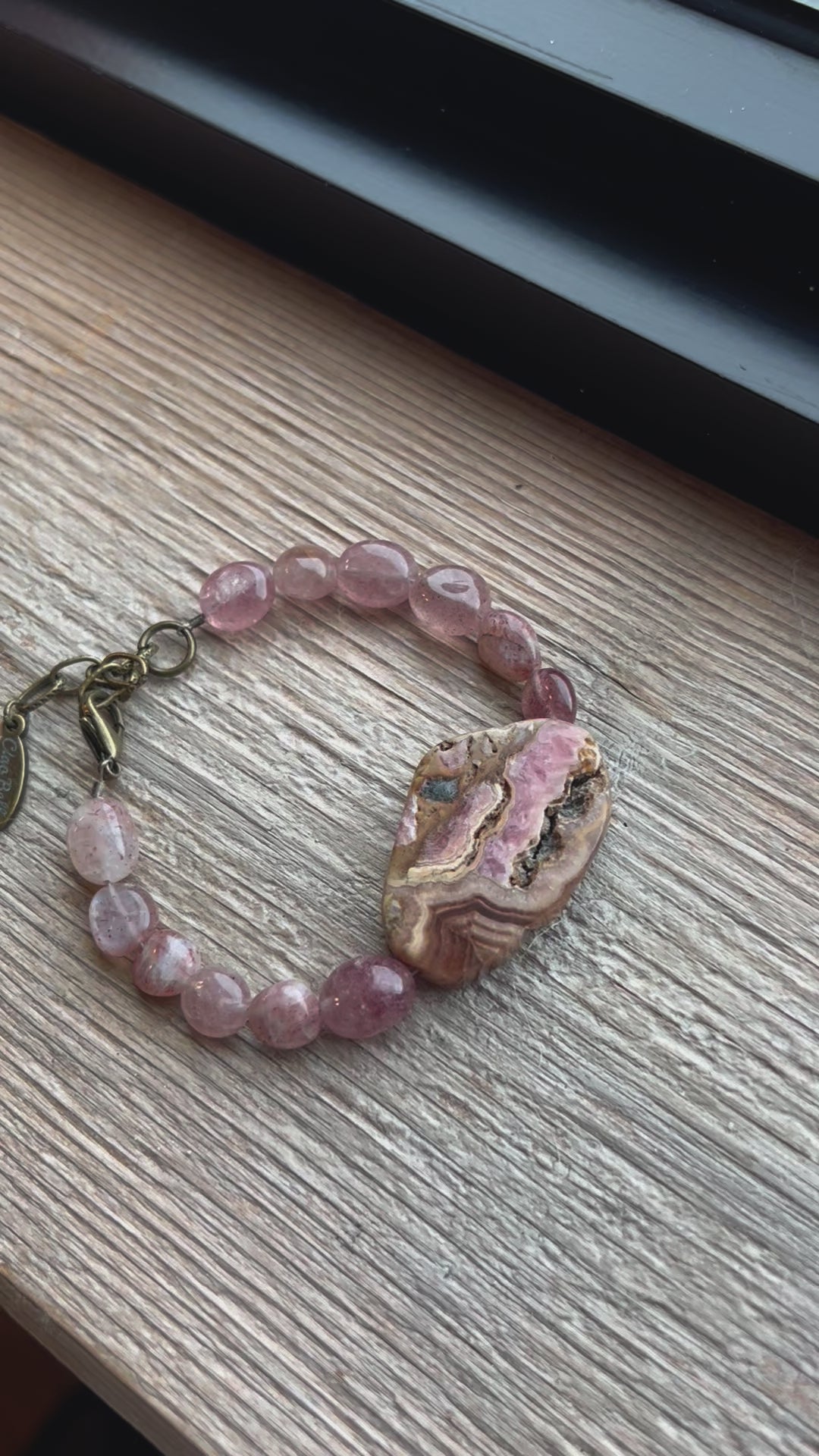 Strawberry Quartz and Rhodonite Bracelet | A Delicate and Earthy Combination