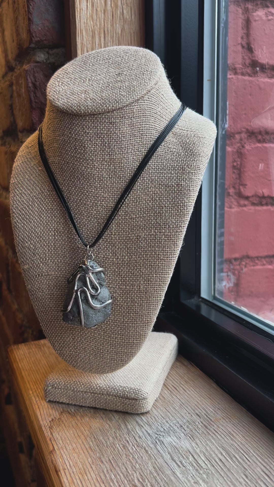 Silver Agate Druzy on Black Cord | A Sleek and Modern Piece