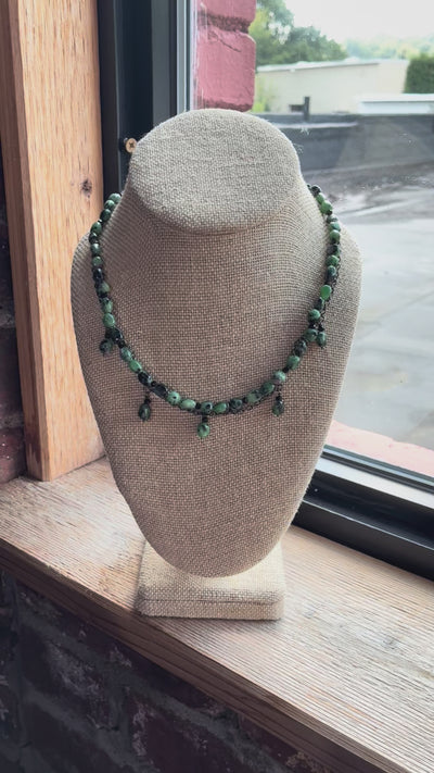 Green Ruby Zoisite Double Strand Necklace with Gunmetal Chain | Edgy and Elegant