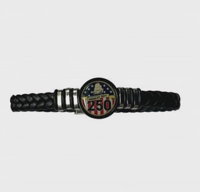 Celebrate the Navy's 250th anniversary with this stylish braided leather bracelet. It features a striking centerpiece commemorating this historic milestone, perfect for showing your Navy pride. The high-quality leather and commemorative design make it both a meaningful and durable accessory.