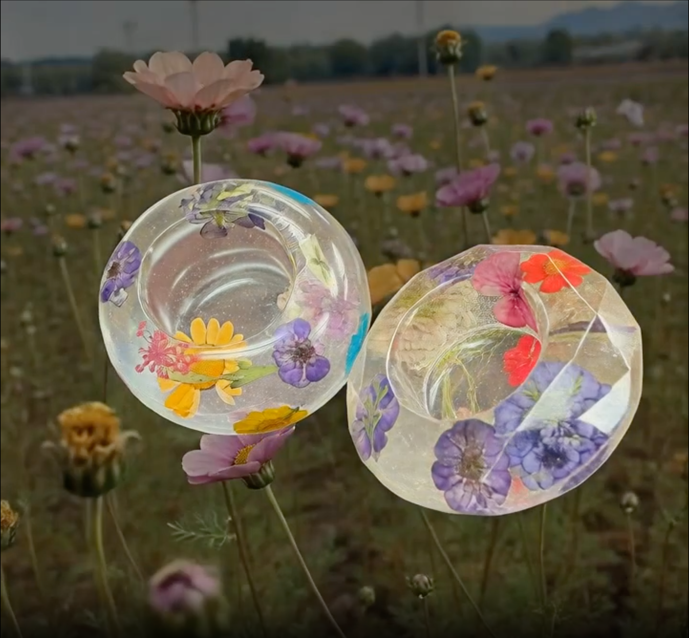 The Everlasting Meadow: Hand-Cast Real Flower Resin Bowls